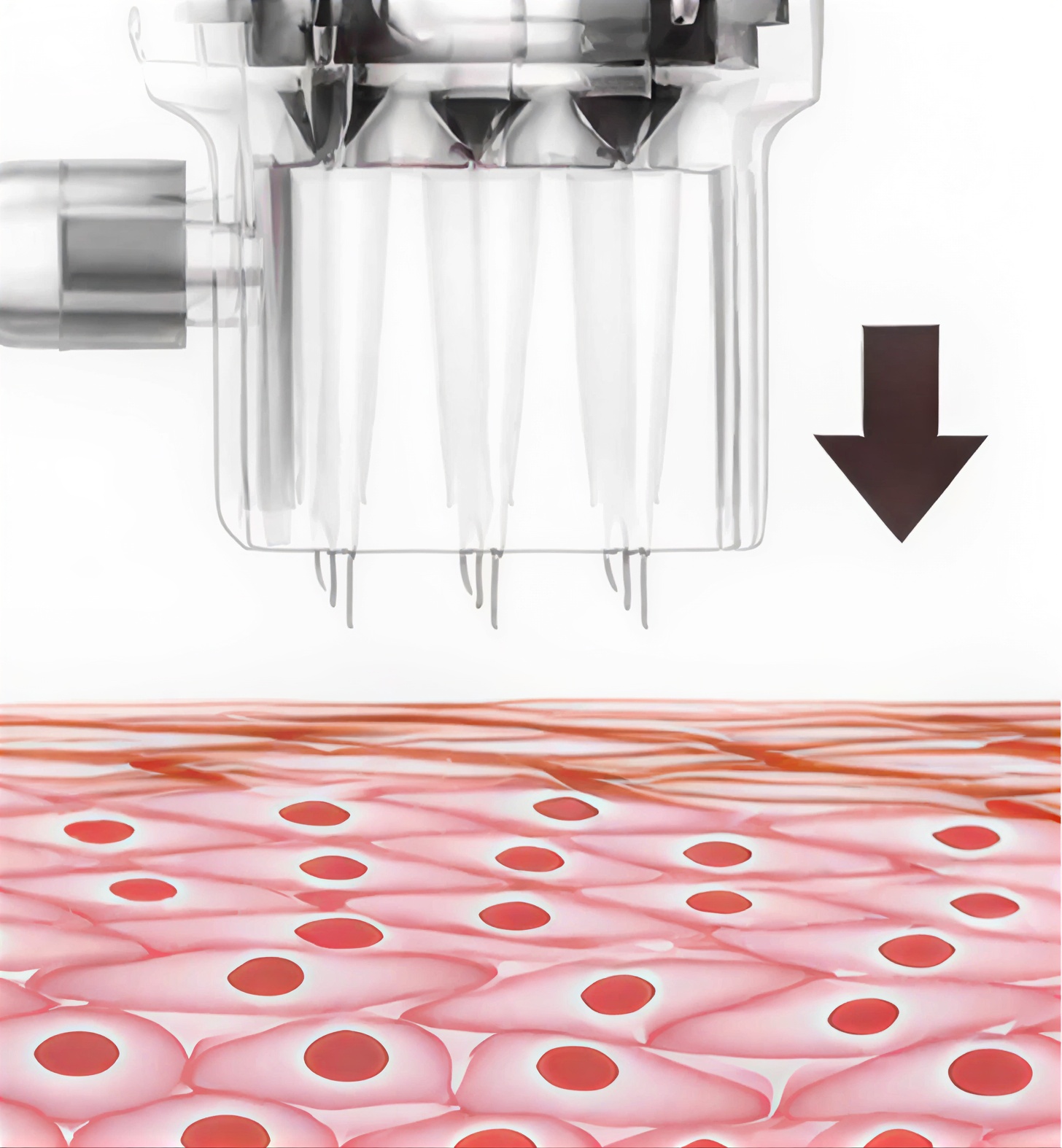 전용 9핀 바늘로 진피층에 균일하게 약물 주입