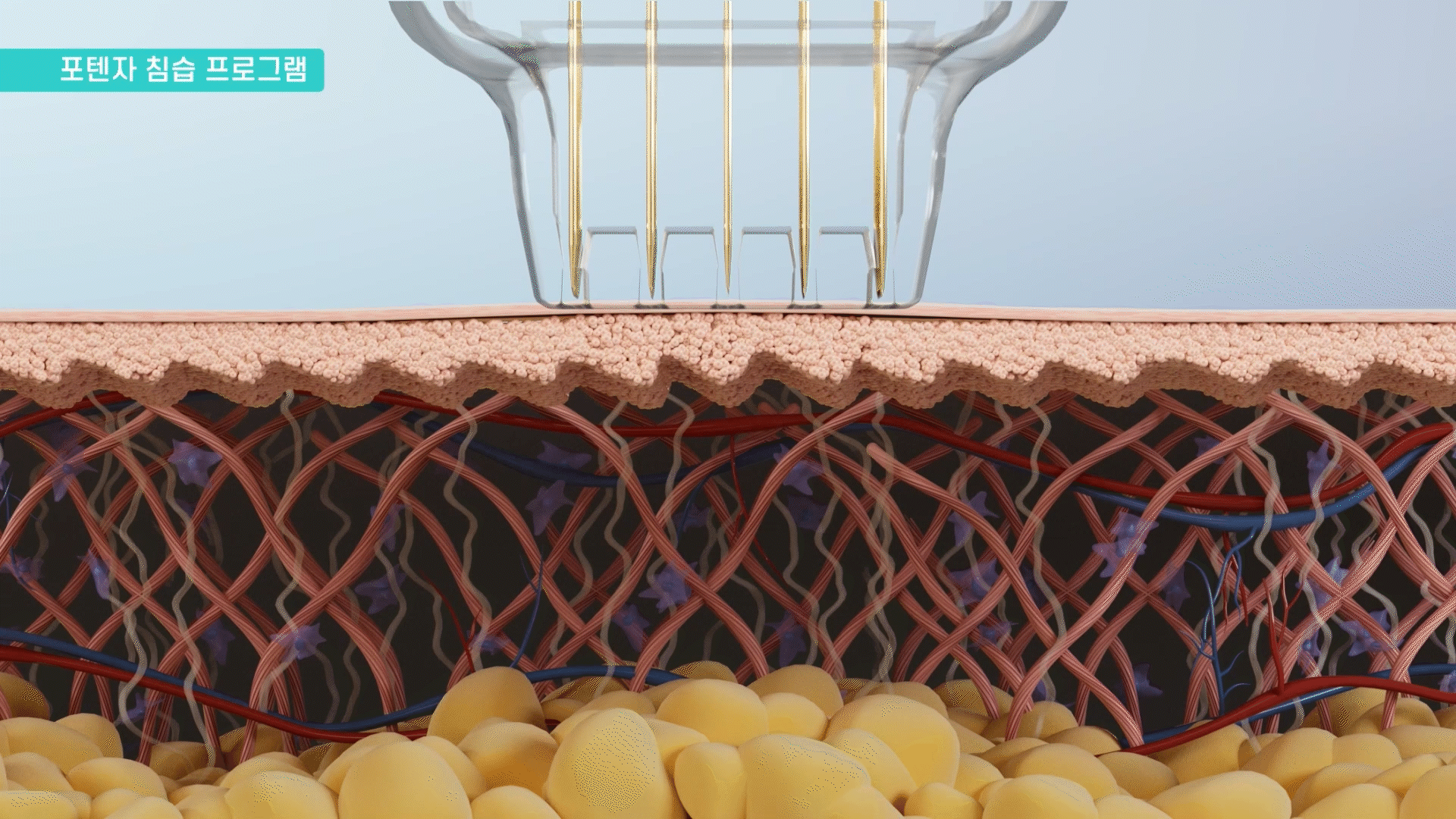 타겟팅된 피부층에 4종류의 RF모드를 활용하여 포텐자의 RF에너지를 조사합니다.